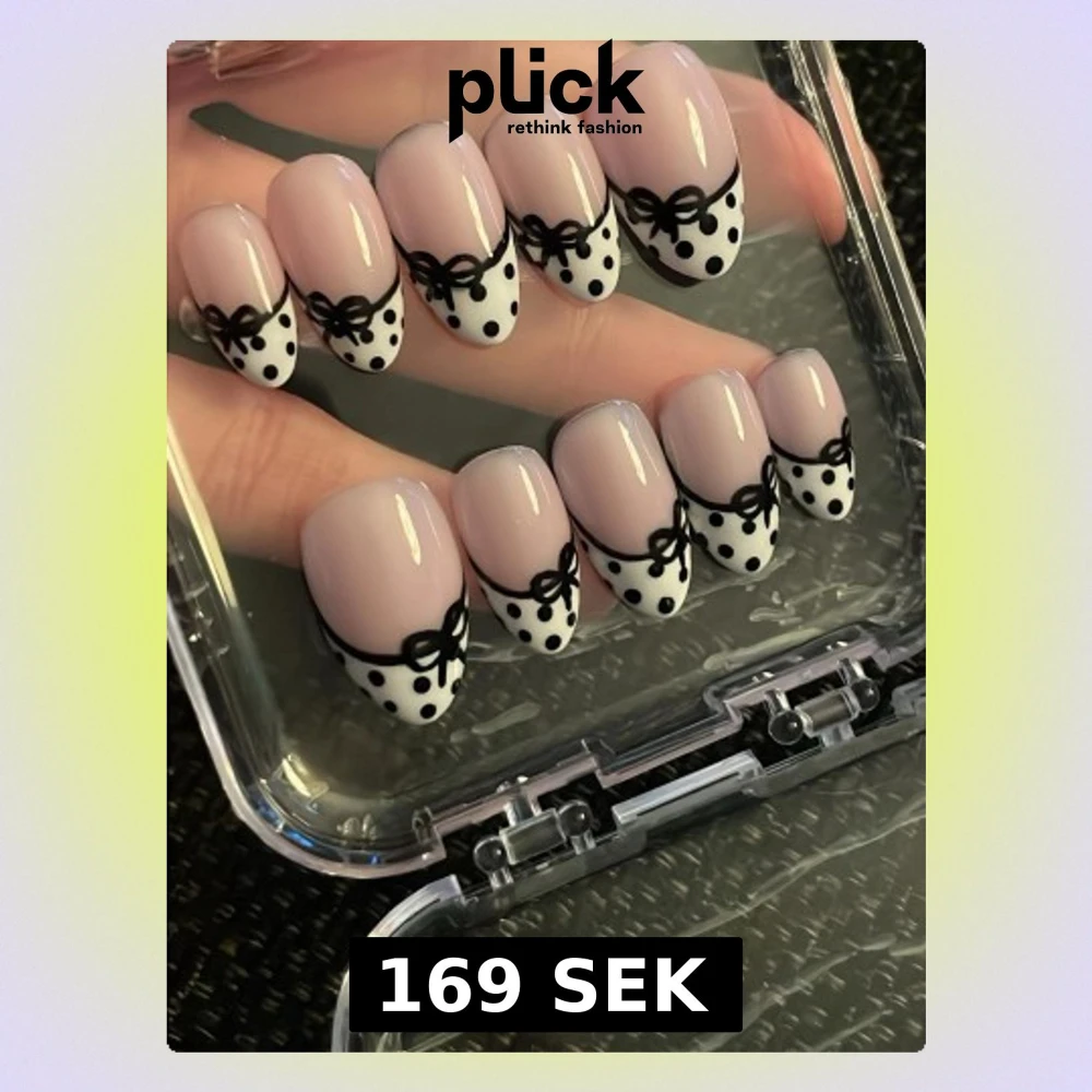 Super söta handgjorda press on naglar i kort mandel form. Du fĂ„r med allt du behöver för att sĂ€tta pĂ„ demđ©·