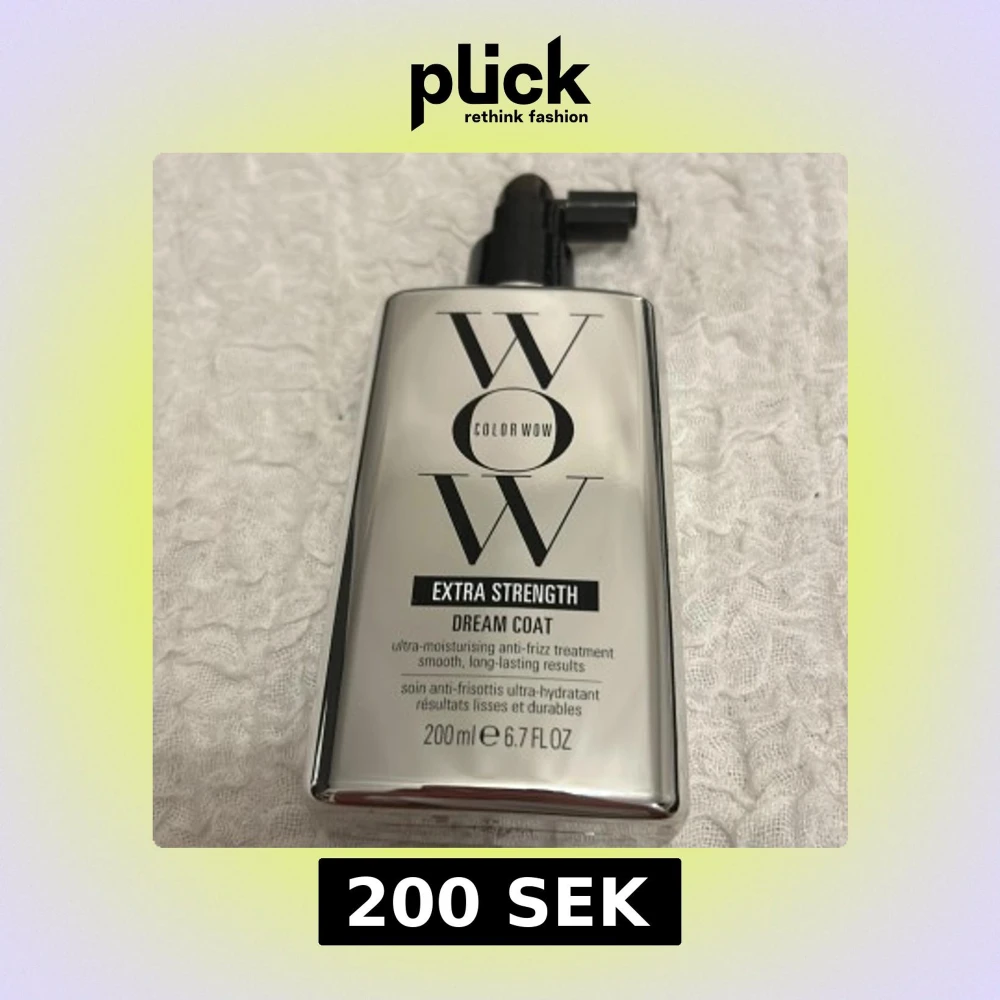 Color Wow Extra Strength Dream Coat är en fuktgivande anti-frizz spray som ger slätt och glansigt hår. Produkten är i en silverfärgad plastflaska med spraymunstycke och rymmer 200 ml. Plomberad!