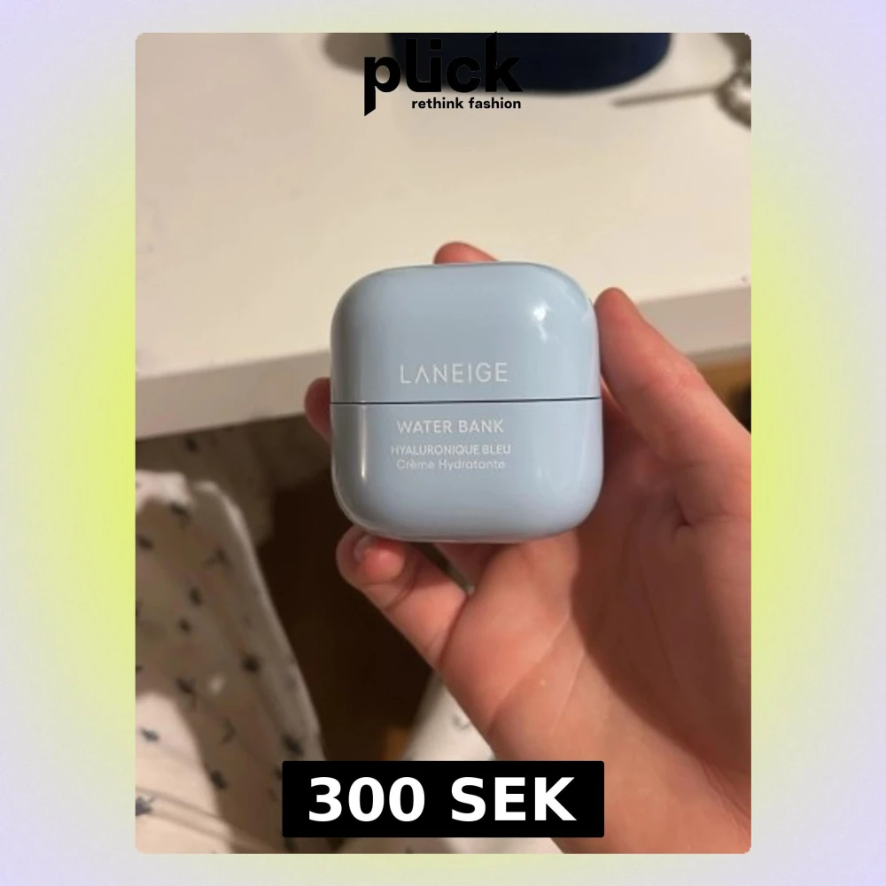 En återfuktande ansiktskräm från Laneige i en ljusblå, stilren burk. Water Bank Hyaluronique Bleu Crème Hydratante har en lätt, vit krämig konsistens och är perfekt för dig som vill boosta huden med fukt. Snygg och modern förpackning som är enkel att ta med.