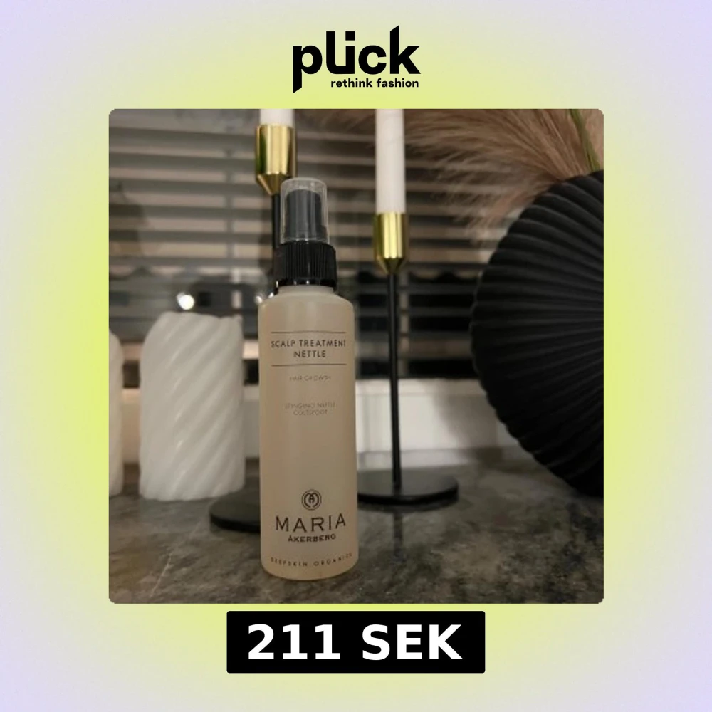Helt ny oöppnad. Scalp Treatment Nettle från Maria Åkerberg är en hårvårdsprodukt i en beige plastflaska med svart spraykork. Produkten innehåller brännässla och tussilago och är framtagen för att stimulera hårväxt. Flaskan har stilren design och rymmer ca 125 ml.