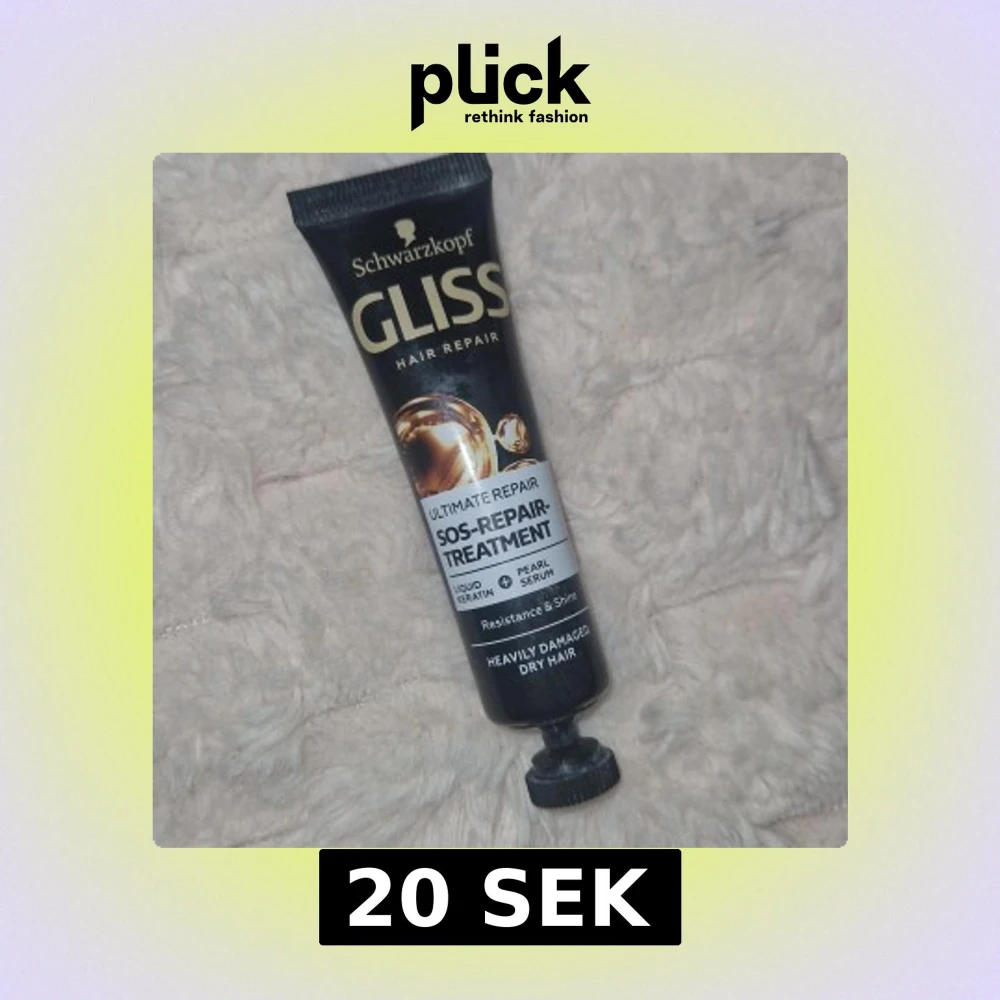 Gliss SOS-Repair Treatment från Schwarzkopf är en hårkur med flytande keratin och pärlserum, perfekt för dig med torrt och skadat hår. Svart tub med guld- och vit text, innehåller 20 ml. Ger motståndskraft och glans till håret.