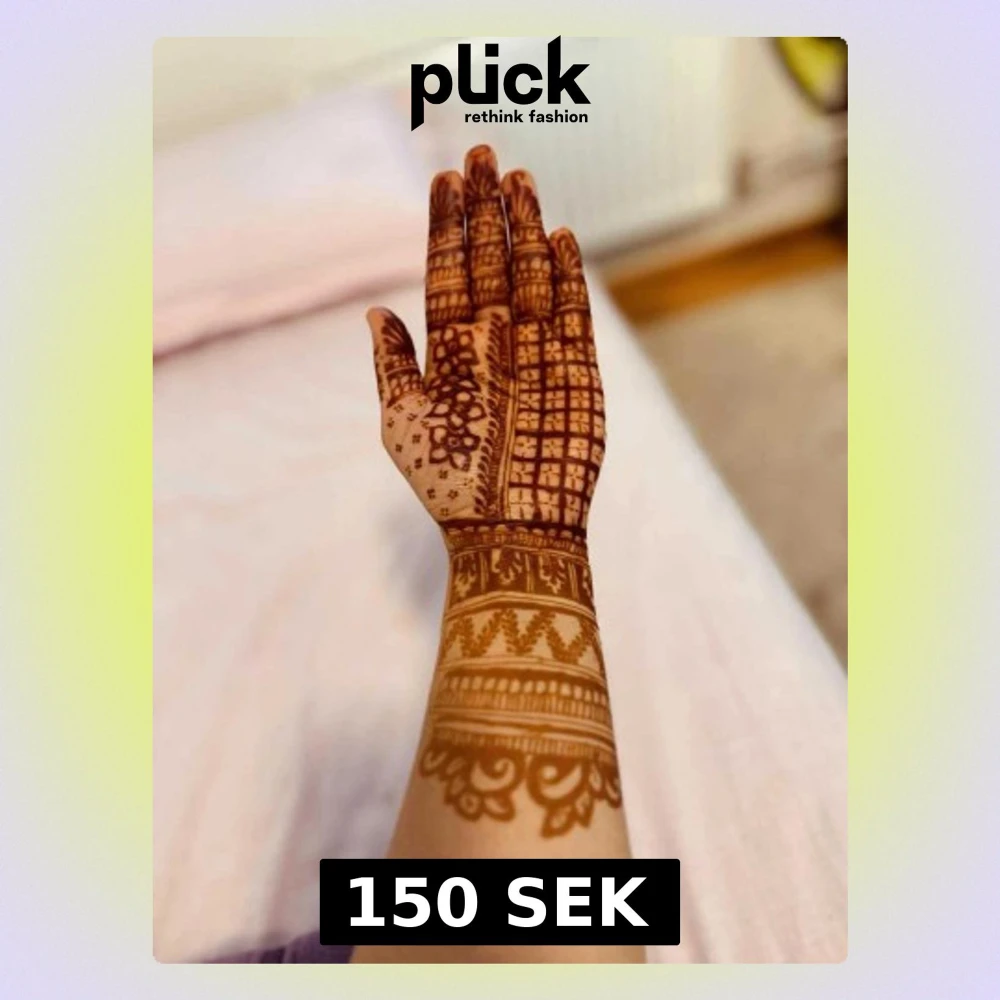 Säljer henna för att skapa detaljerade och unika mönster på händer och armar. Färgen är djup brunröd och ger ett snyggt resultat med både blommiga och geometriska motiv. Perfekt för dig som vill ha kreativa och personliga designs. Henna är växtbaserad och appliceras med kon eller pensel.