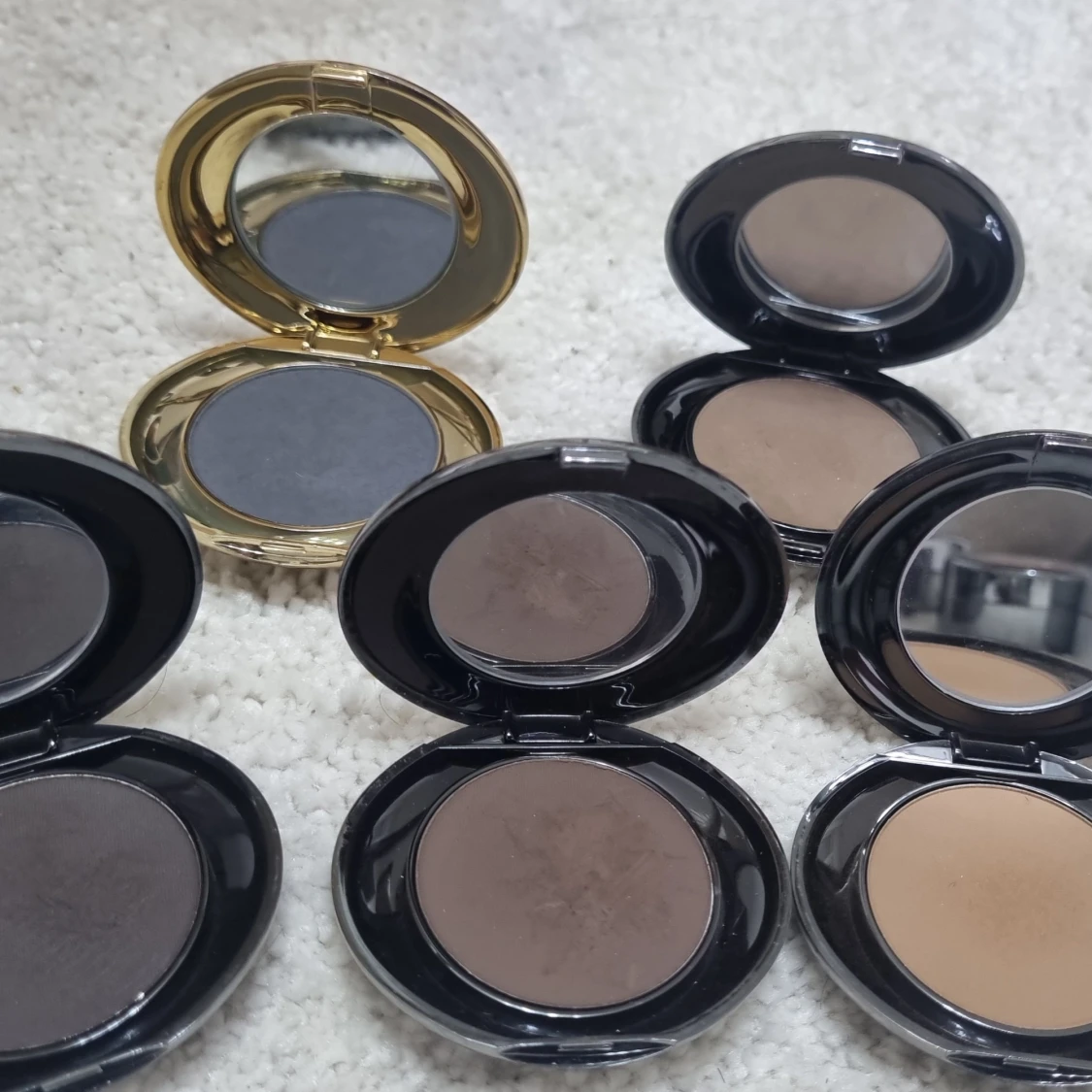 Flera ögonskuggor i olika bruna och grå nyanser, perfekta för att skapa både naturliga och mer markerade ögonlooker. Kommer i svarta och en guldig rund dosa, alla med spegel i locket. Pudrig formula som är lätt att blenda. 50kr/st