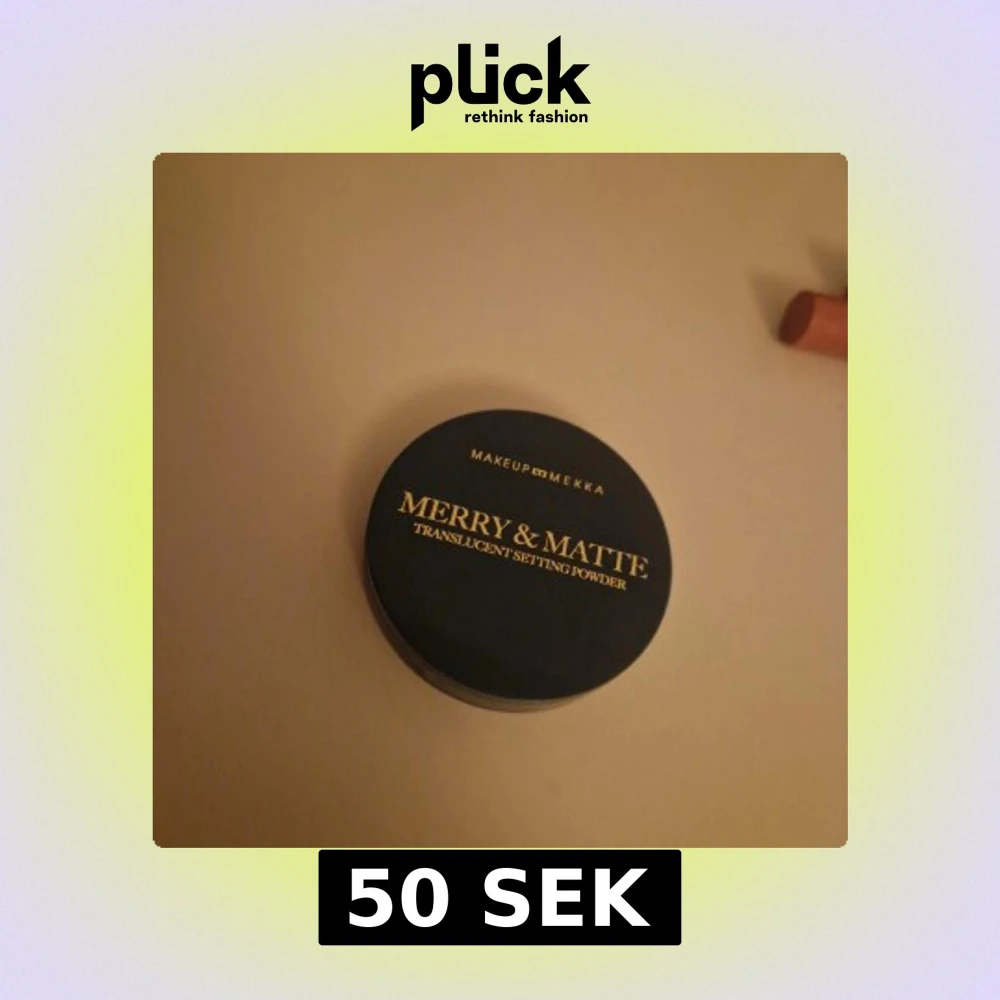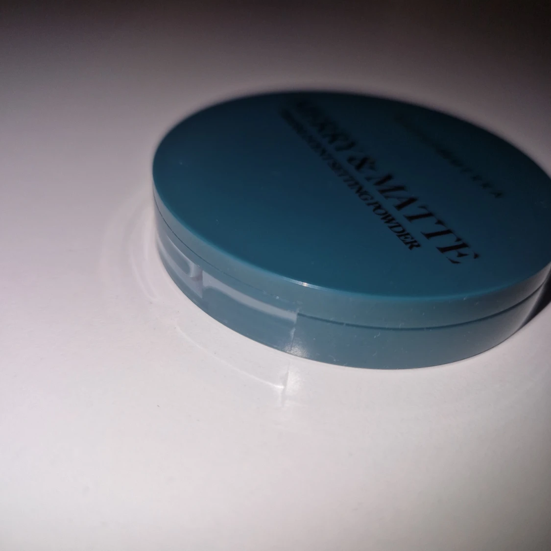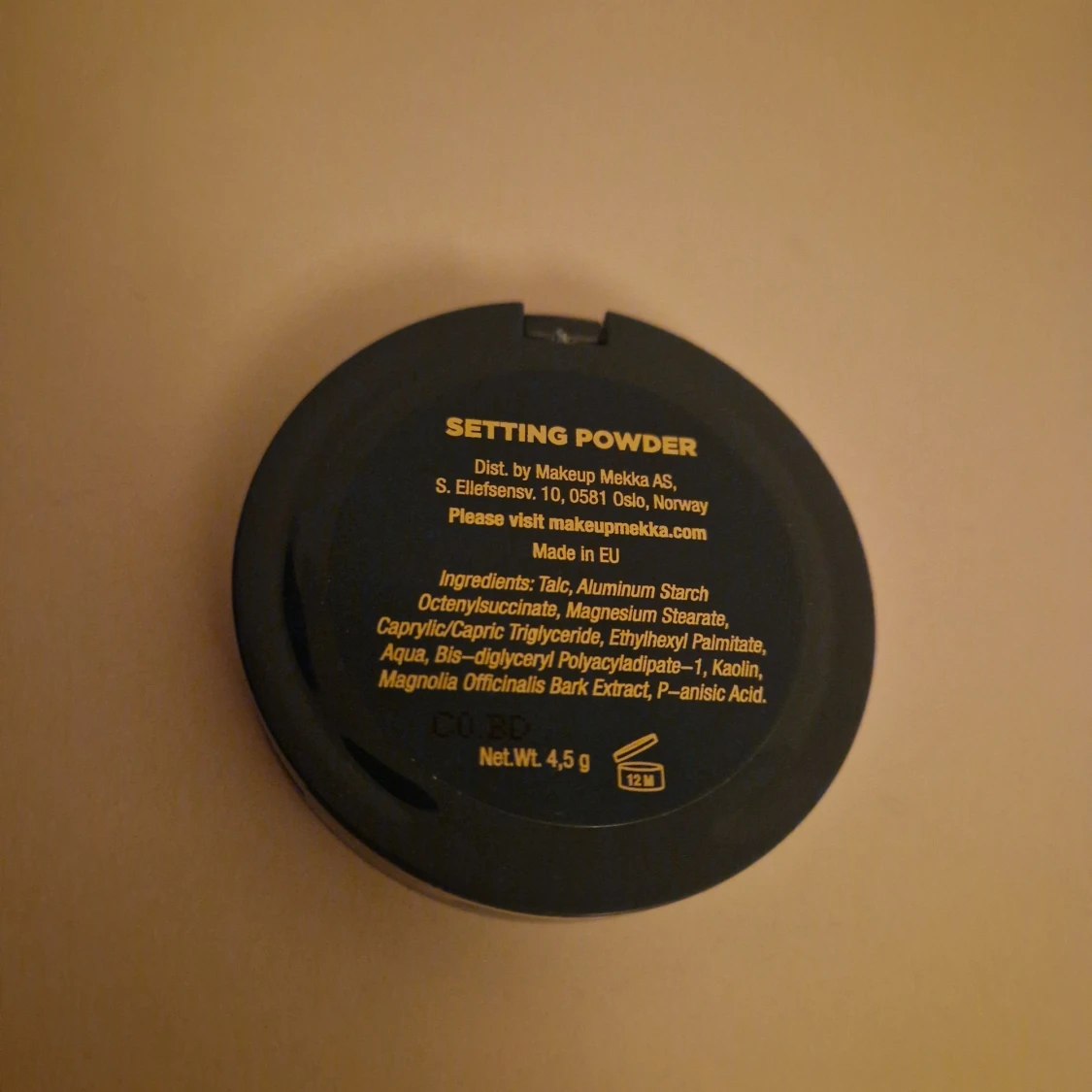 Translucent setting powder från Makeup Mekka i en rund, kompakt burk med svart och blågrön plast. Ger en matt finish och håller sminket på plats hela dagen. Perfekt för att fixera foundation och concealer utan att kännas tung på huden.
