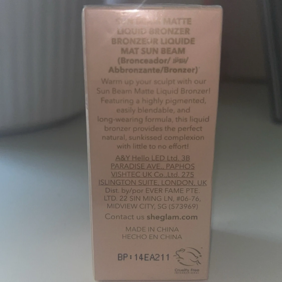 Helt ny i obruten förpackning! SHEGLAM Sun Beam Matte Liquid Bronzer i färgen Golden Sun. Flytande bronzer med matt finish, hög pigmentering och lätt att blenda ut. Ger en naturlig, solkysst look. Kommer i en stilren beige förpackning med guldtext. Perfekt för att skulptera ansiktet.