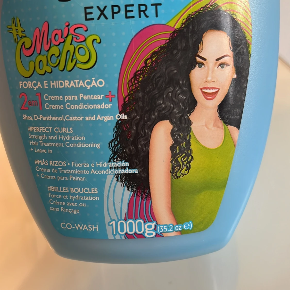 Stor 1000g hår kräm för lockigt hår. Skala Expert Mais Cachos är en 2-i-1 leave-in och conditioner med shea, D-panthenol, ricinolja och arganolja. Perfekt för att ge styrka och fukt till lockar. Använt någon gång.