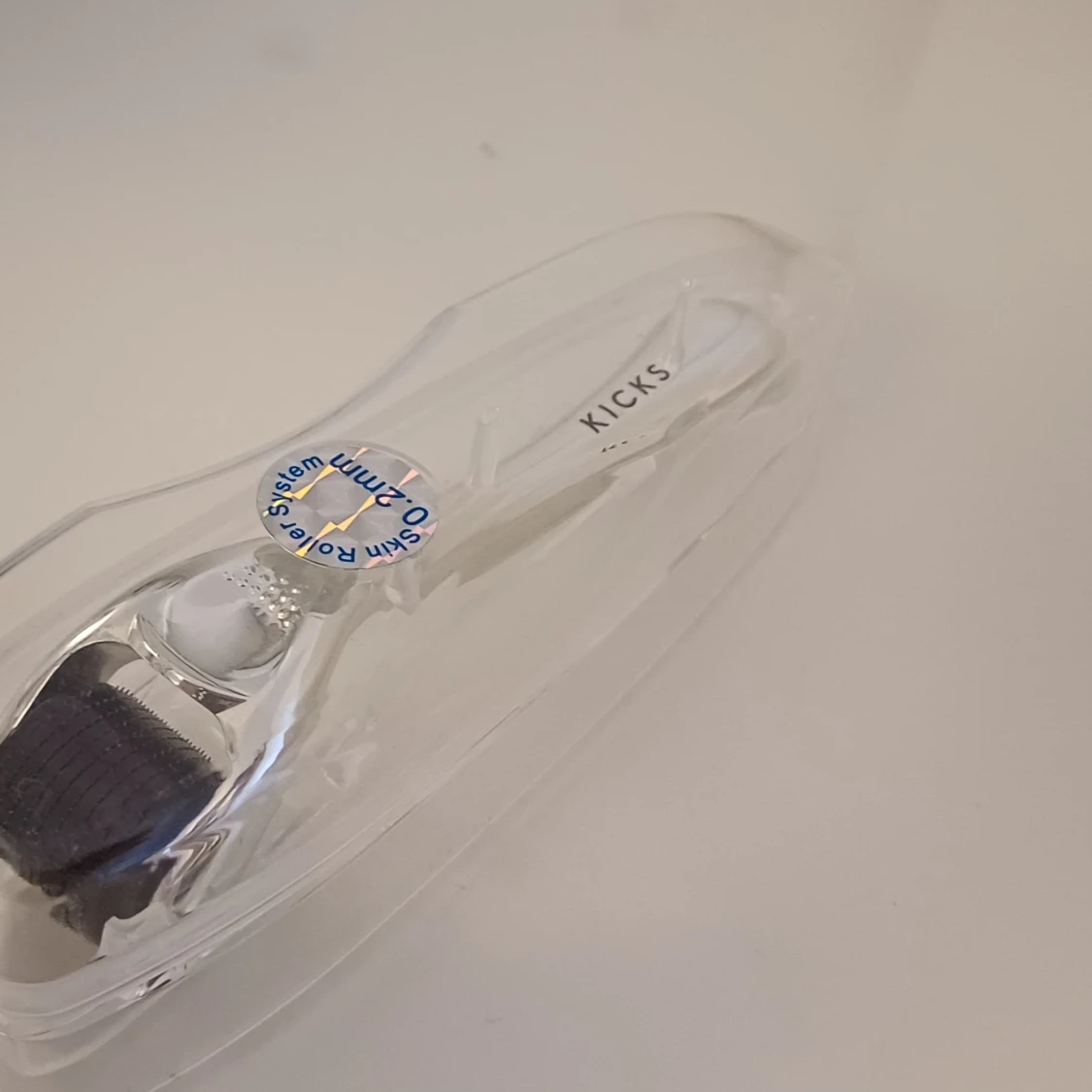 Skin Roller från Kicks med 0,5 mm nålar, perfekt för att boosta hudvårdsrutinen. Handtaget är vitt och verktyget kommer i ett genomskinligt plastfodral. Passar dig som vill ha extra glow och jämnare hudstruktur. Helt ny