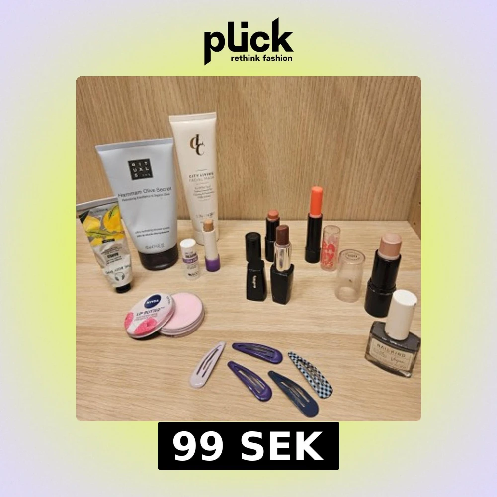 Säljer ett skönhetspaket med 2 läppstift, 2 läppbalsam, concealer stick, highlighter stick, nagellack, kroppsskrubb, handkräm, ansiktsmask och hårspännen. Allt säljs tillsammans, varierande skick! 🥰