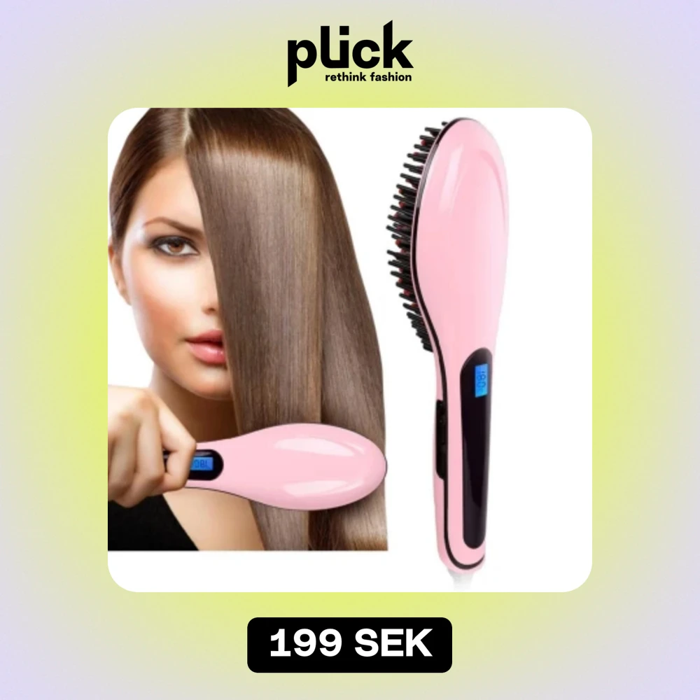 Säljer en rosa elektrisk hårborste som både borstar och plattar håret samtidigt. Den har en digital display som visar temperaturen och värmeinställningar (80-230 grader) Perfekt för att snabbt och enkelt få ett rakt och glansigt hår. Använd några gånger men fungerar utmärkt. Sladden är lång och flexibel för enkel användning. nypris är 345 jag säljer för 199!