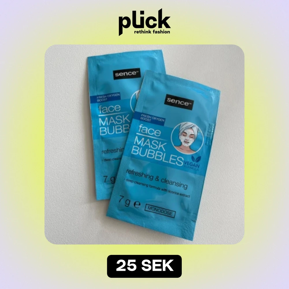 Säljer två förpackningar av Sence Face Mask Bubbles. Dessa ansiktsmasker är veganska och ger en uppfriskande och rengörande effekt med en bubblande formula. Varje förpackning innehåller 7g och är en monodos. Perfekt för en djup rengöring med lakritsextrakt som ger en fräsch känsla.