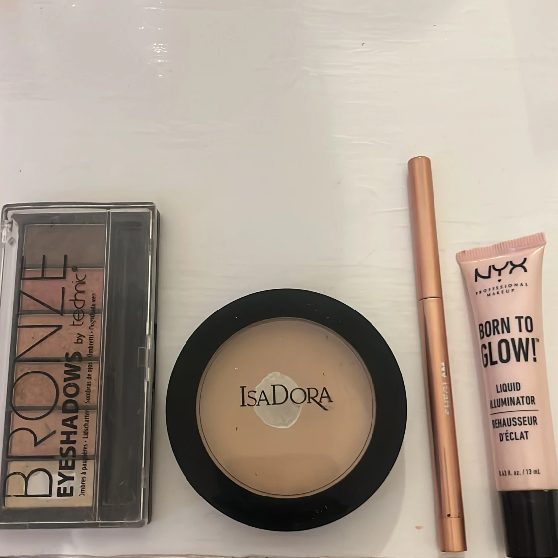 Säljer paletten för 45 kr, Isadora pudret för 30 kr, highlighter pennan för 15 kr och nyx highlightern för 45 kr. Kontakta vid fler frågor! 💄💋