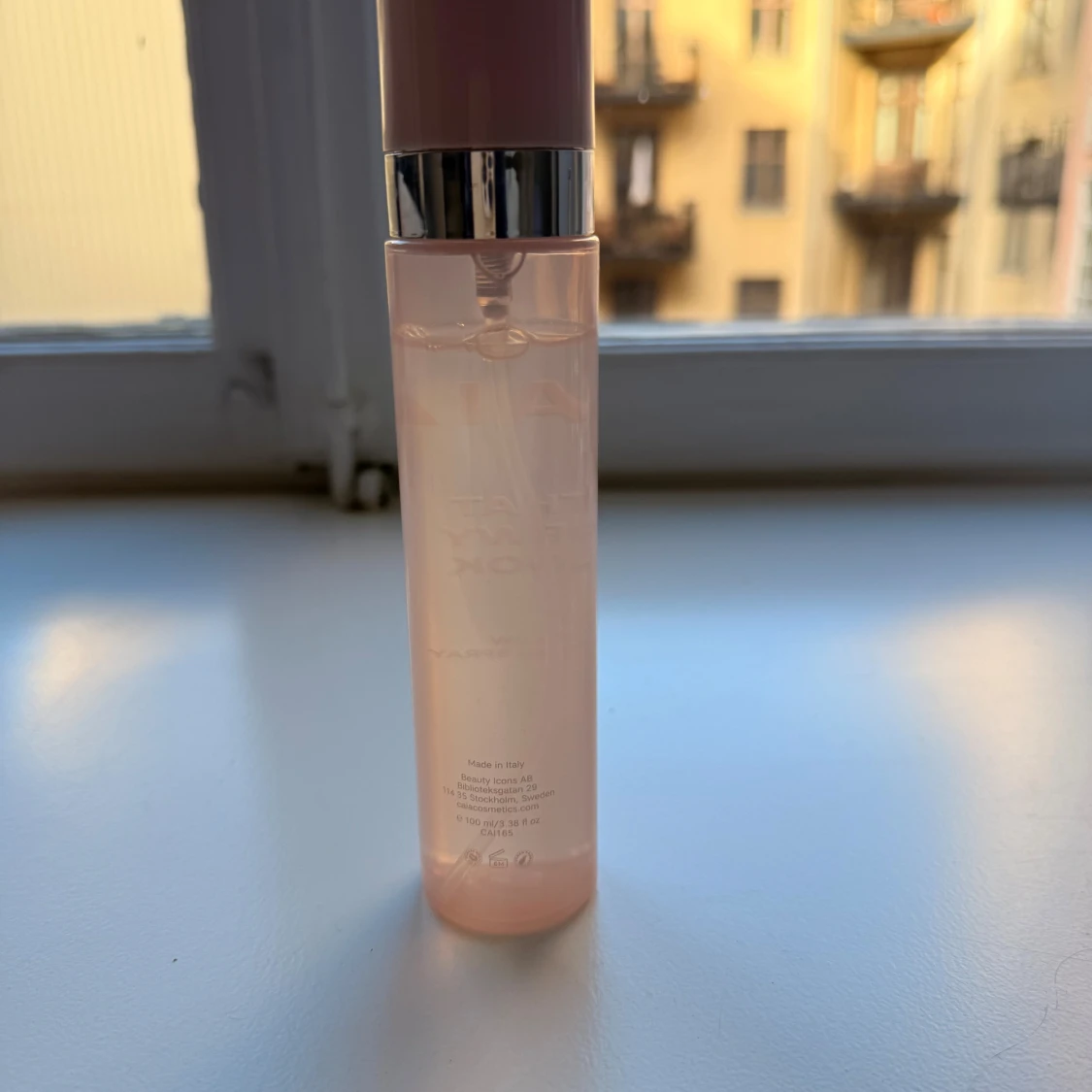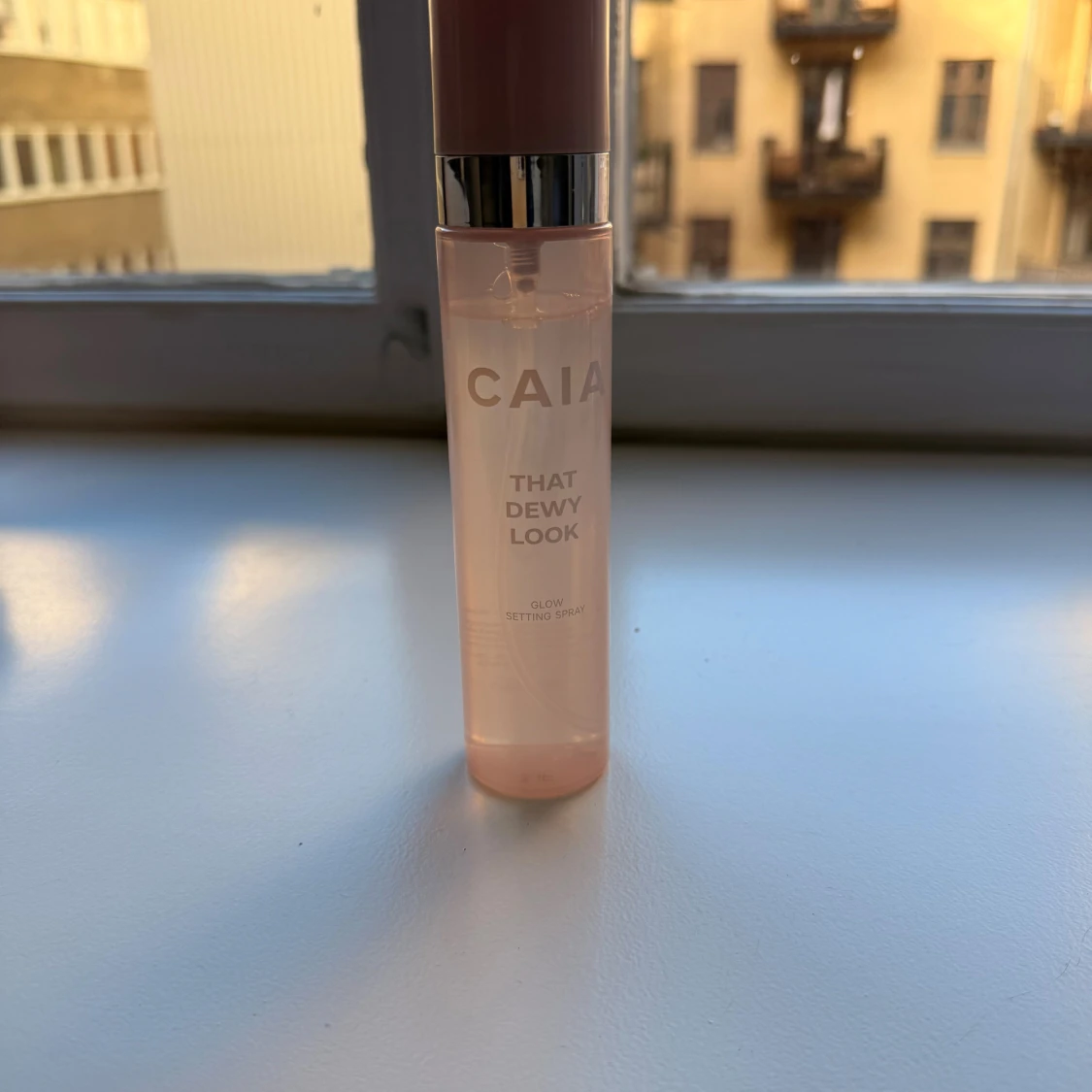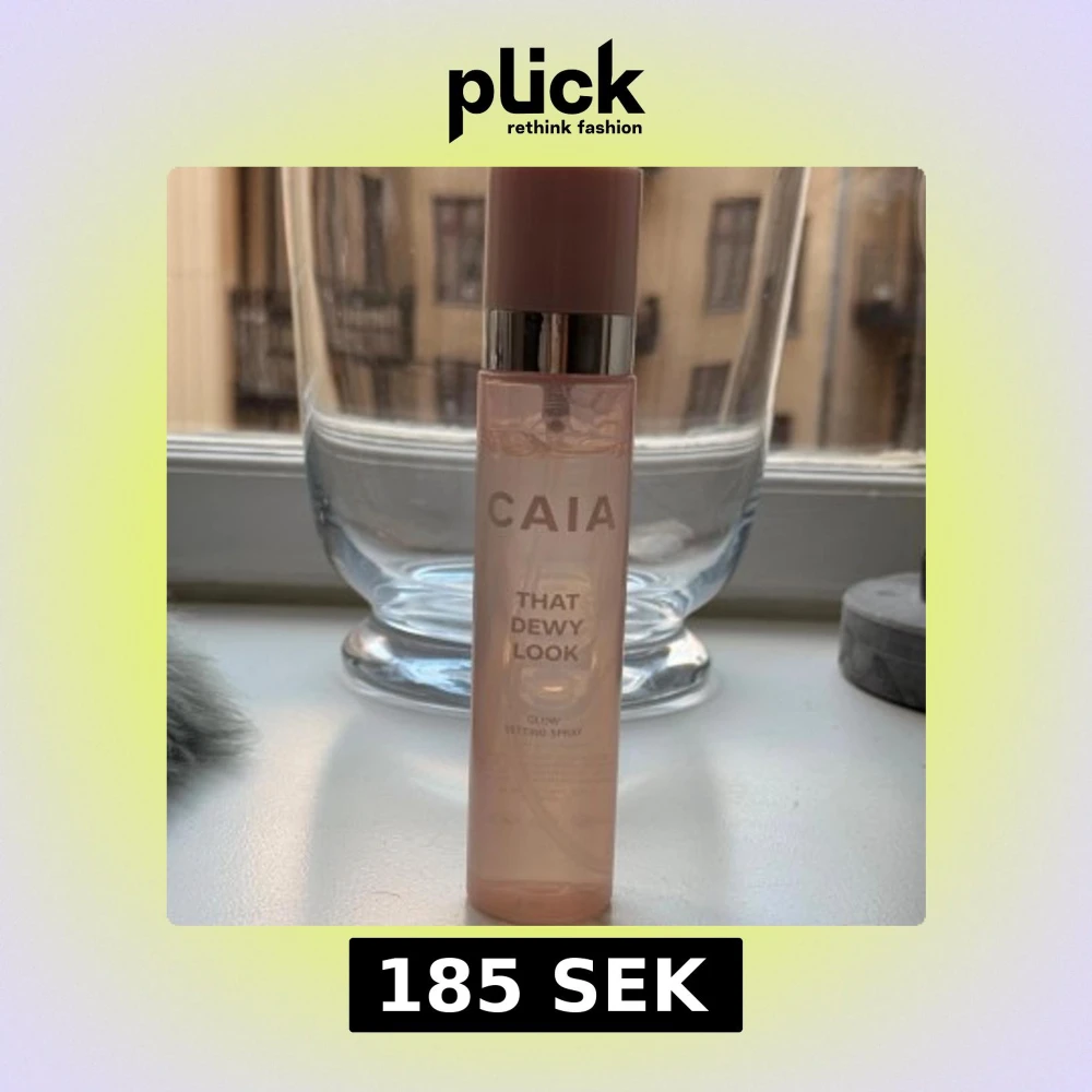 Glow setting spray från CAIA i en snygg cylinderformad flaska med ljusrosa lock och silverdetalj. Ger en fräsch, daggig finish och håller sminket på plats. Perfekt för dig som vill ha extra glow och återfuktning under dagen. Jag har testat den några gånger och skulle säga att det är 90-95% kvar i flaskan så den är ju som ny.