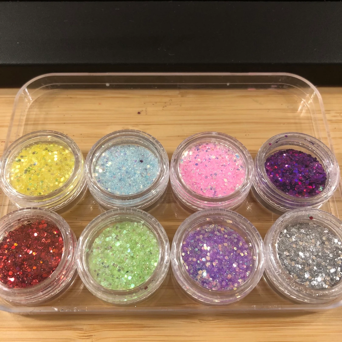 Underbart fint glitter som passar till nagellack eller också sminket, det är bara fantasin som sätter stopp för vad man kan hitta på! 10kr/st eller 3 för 2:)❤️🧡💛💚💙💜
