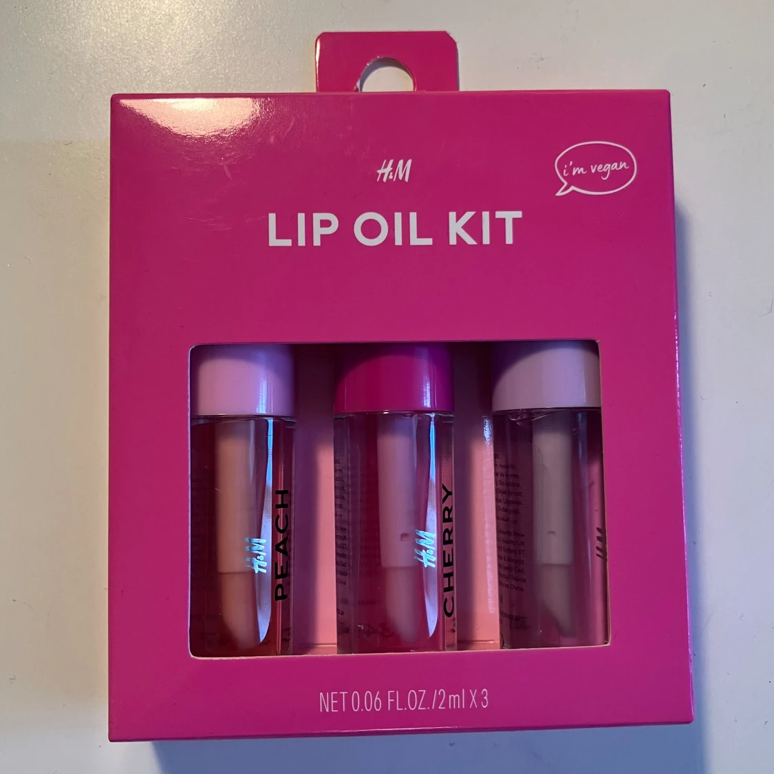 Helt nytt set lip oils från Hm, köpta i spanien och paketet gick tyvärr sönder lite i frakt (fick en repa) men som man ser är det oöppnat då platsen sitter kvar. Kommer tyvärr aldrig använda dessa :/
