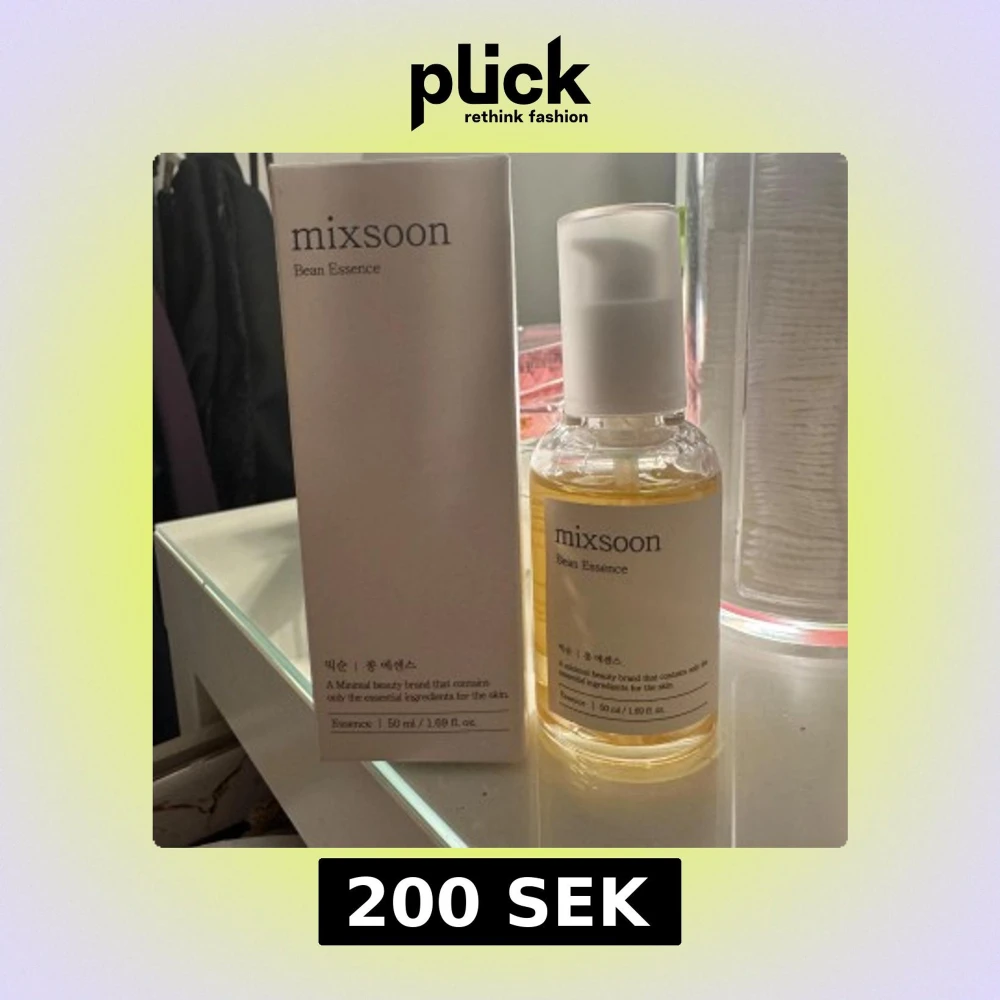 Mixsoon Bean Essence är en koreansk skönhetsprodukt i en genomskinlig flaska med vit pump. Den innehåller naturliga ingredienser för att vårda huden. Flaskan rymmer 50 ml och kommer i en stilren förpackning.Den är helt ny då jag fick dubletter i julklapp. Nypris runt 300kr