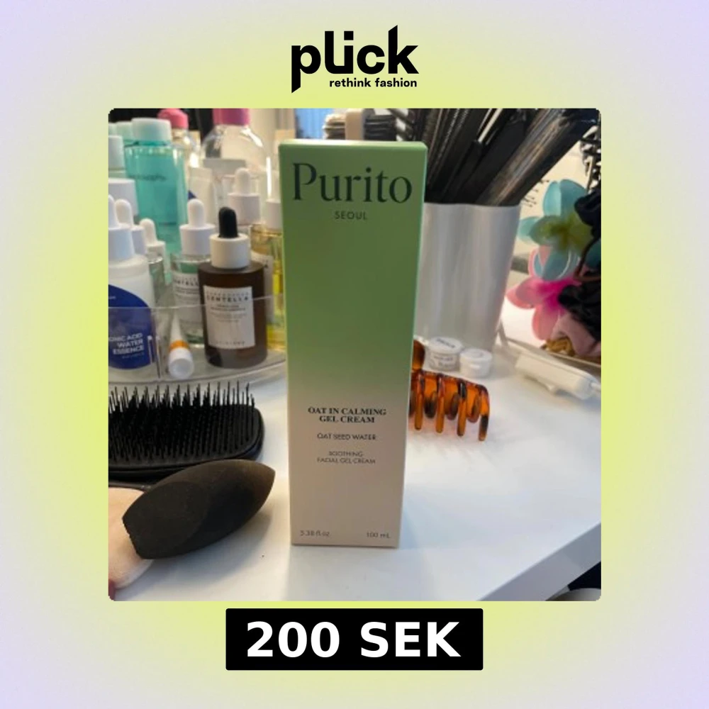 Purito Oat In Calming Gel Cream är en ansiktsgel med havreextrakt som lugnar och återfuktar huden. Kommer i en stilren grön och beige förpackning på 100 ml. Perfekt för dig som vill ha en lätt och svalkande kräm i din hudvårdsrutin.