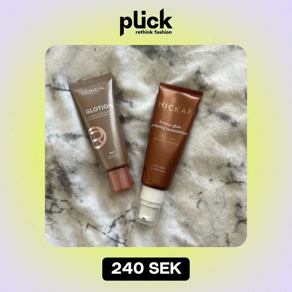 En helt oöppnad L’Oréal lumi glotion i färg 903 medium glow och hickap bronze glow priming moisturizer som är använd till ca 50%. Köp en för 140 eller båda för 240🩷🩷