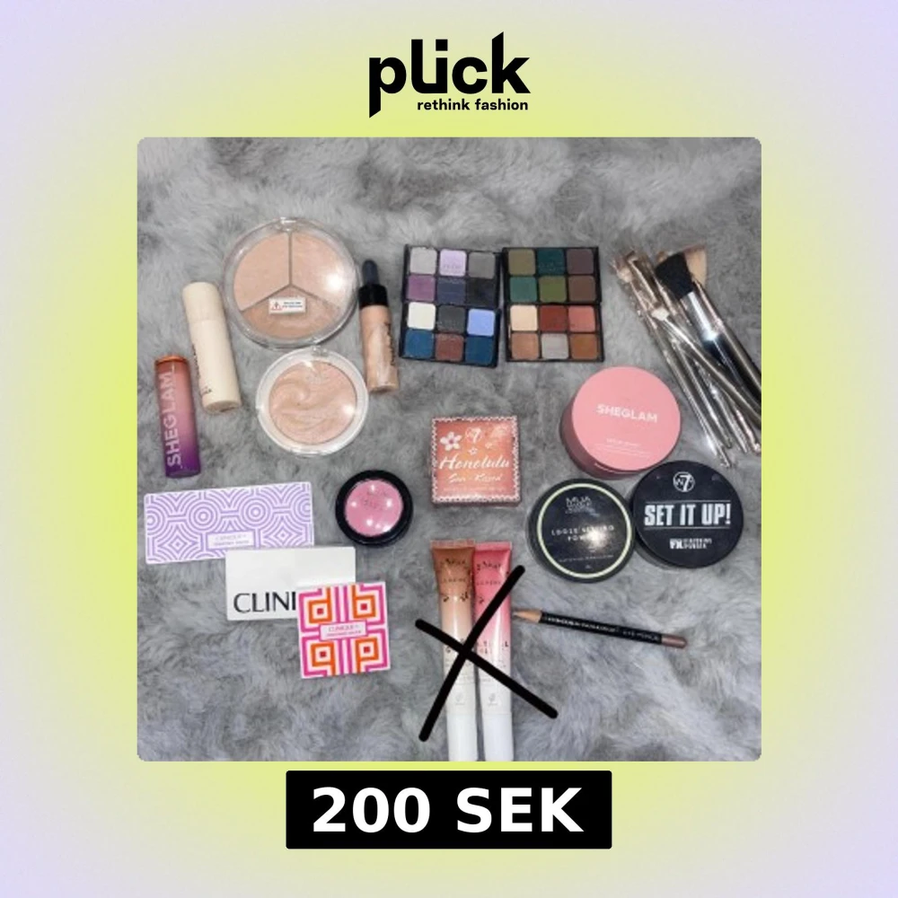 Highlighters, blush, bronser, glittrigt läppbalsam, ögonskuggor, liquid bronser och blush, nya sminkborstar, ögonpenna. De flesta är oanvända eller endast testade. Går att köpa seperat, kontakta mig för pris💕💕