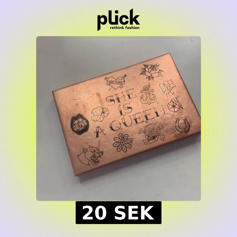 Snygg ögonskuggspalett från Revolution med sex olika nyanser. Paletten har en stilren design med texten 'She Is A Queen' och olika tatueringar på framsidan. Perfekt för att skapa både vardagliga och dramatiska looks.