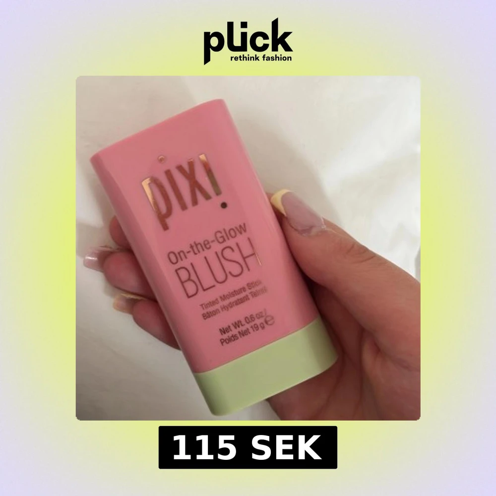 Säljer en Pixi On-the-Glow Blush i stickformat. Färgen är en fräsch rosa nyans som ger kinderna ett naturligt glow. Förpackningen är rosa med ljusgrön botten och innehåller 19 g. Perfekt att ha med i väskan för snabba touch-ups.