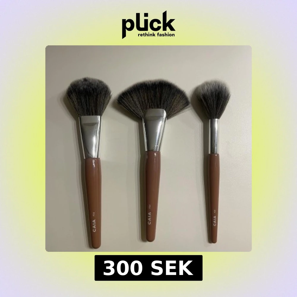 Tre sminkborstar från CAIA, kan vara använda någon gång men har annars bara legat bland mina andra borstar. De är rengjorda. Nypris för borstarna 745. Perfekt julklapp eller present.