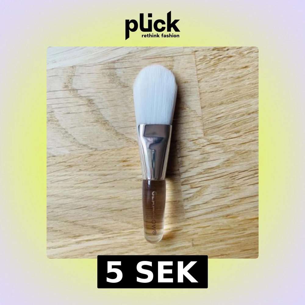 Snygg sminkborste från Glamglow med vita, täta syntetiska borst och ett genomskinligt handtag med silvrig detalj. Perfekt för applicering av ansiktsmasker eller krämprodukter. Borsten har en platt, oval form som gör det enkelt att få ett jämnt resultat.