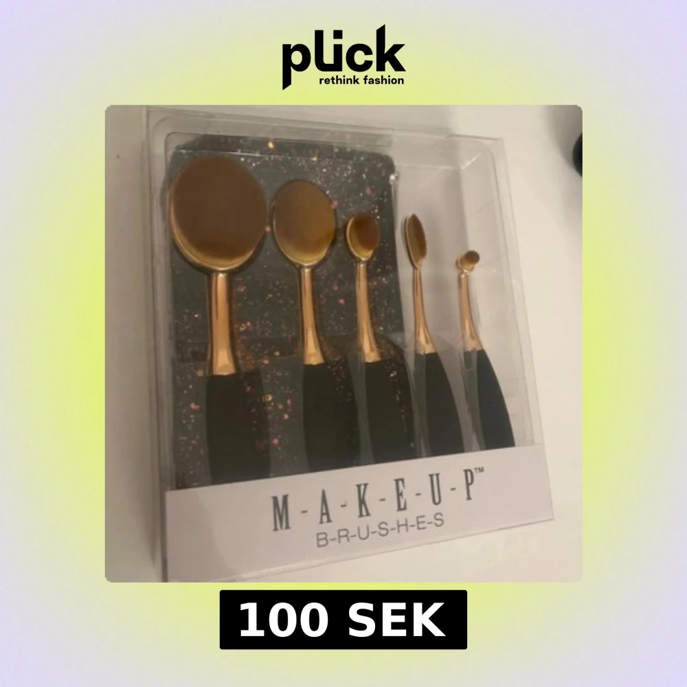 Sett med 5 sminkborstar i olika storlekar. Det bedföljer även en necessär. Paketet är helt oöppnat då jag en annan likadan. 🫶🏻
