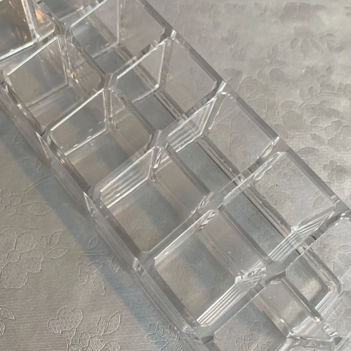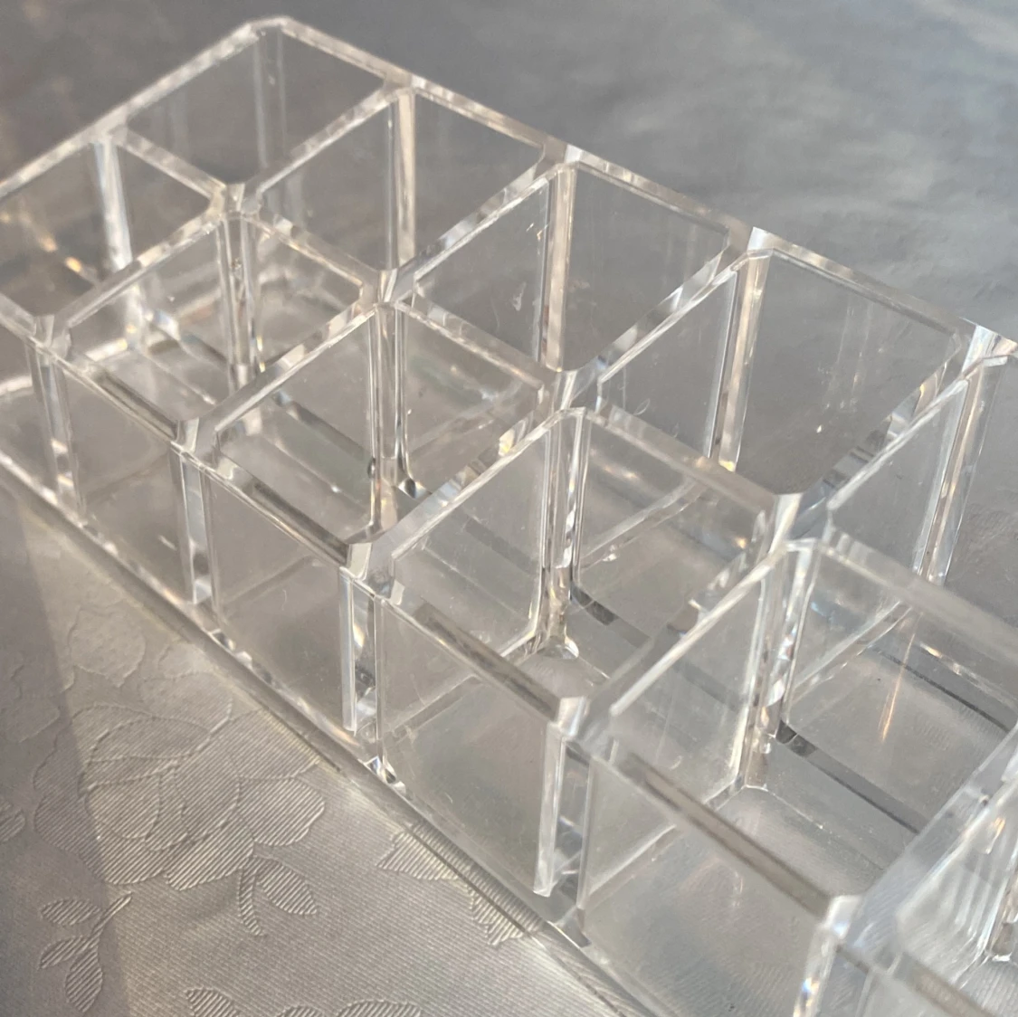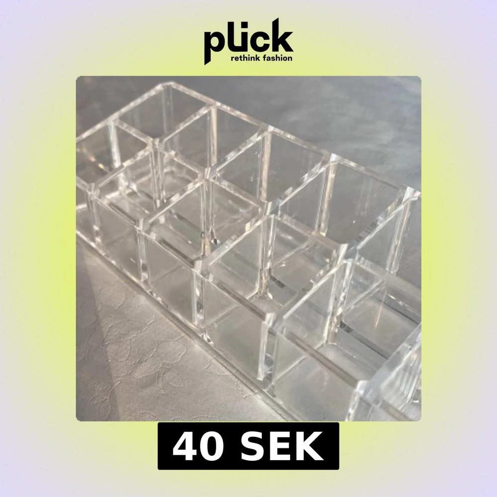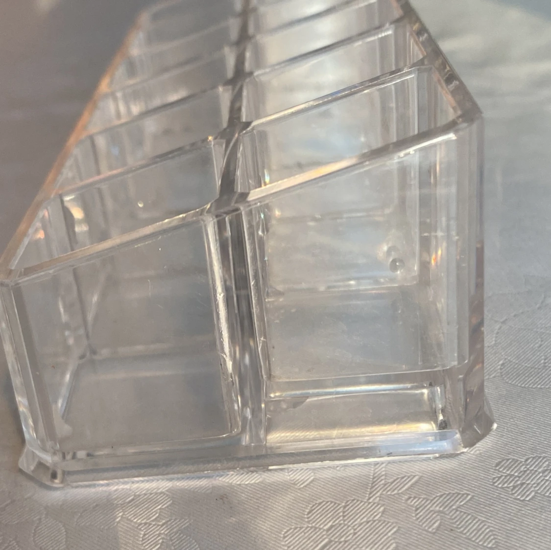 Säljer en transparent sminkorganiserare i akryl med flera fack. Perfekt för att organisera läppstift, läppglans och andra läppprodukter. Gör så att sminkbordet ser mer organiserad ut. Pris går att diskuteras ❤️!!