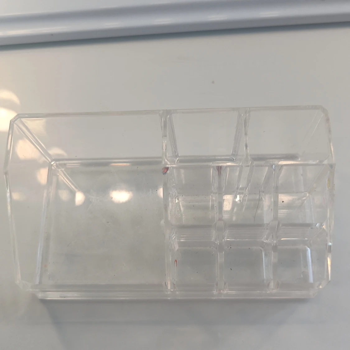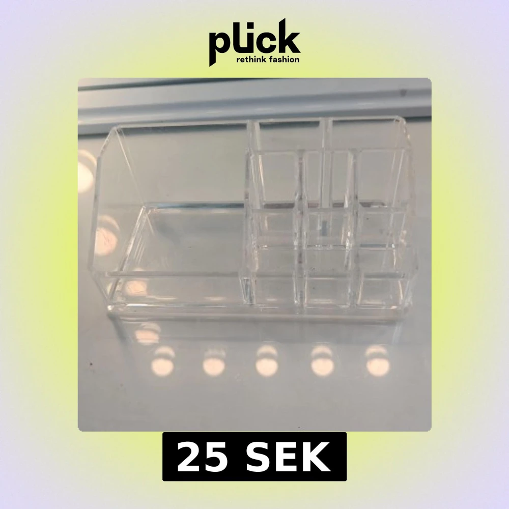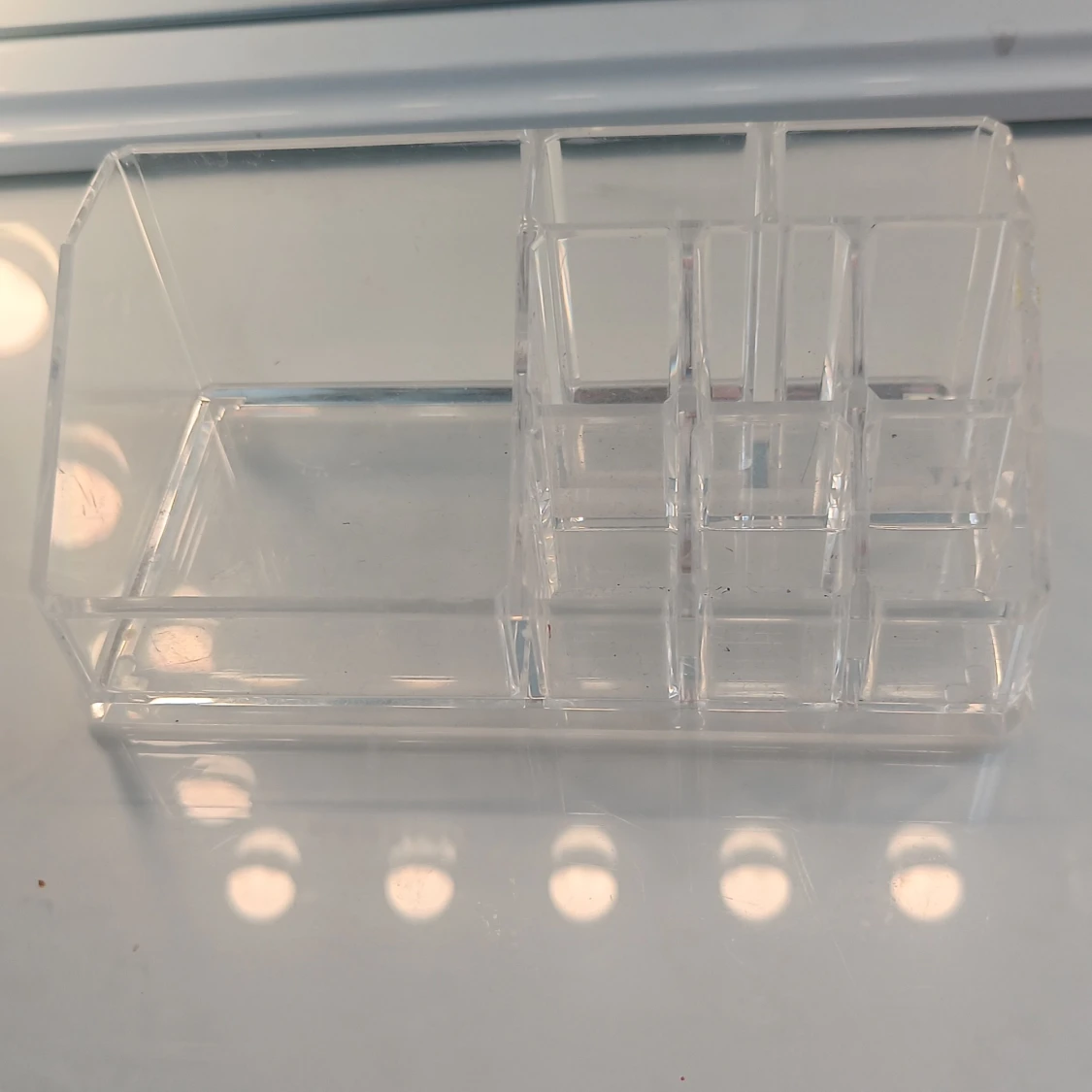 Praktisk och stilren sminkorganiserare i genomskinlig akryl med flera fack i olika storlekar. Perfekt för att förvara sminkborstar, läppstift, ögonpennor och andra sminkaccessoarer. Enkel att hålla ren och passar snyggt på sminkbordet.