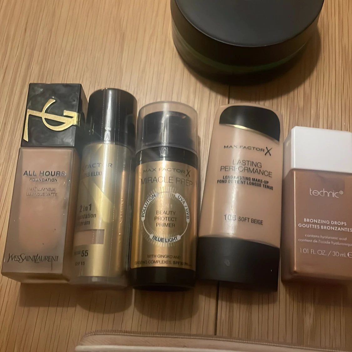 Säljer ett sminkset med Yves Saint Laurent foundation, Max Factor primer och foundation, Technic bronzing drops och en ögonskuggspalett i rosa och bruna toner. Inkluderar även en Mary Kay sminkväska. Nästan allt nytt❤️ Paketpris