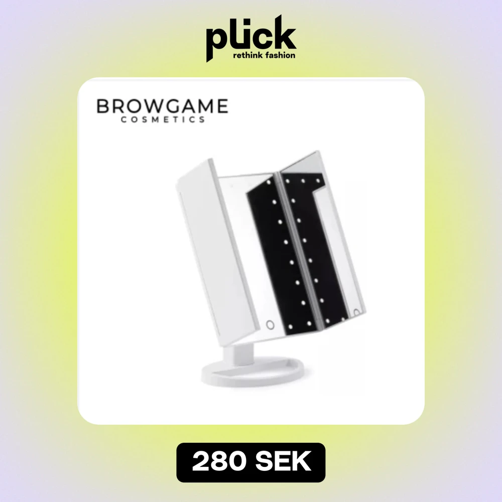 sminkspegel från browgame cosmetics med inbyggda lampor som går att sätta av och på. köpt i julas