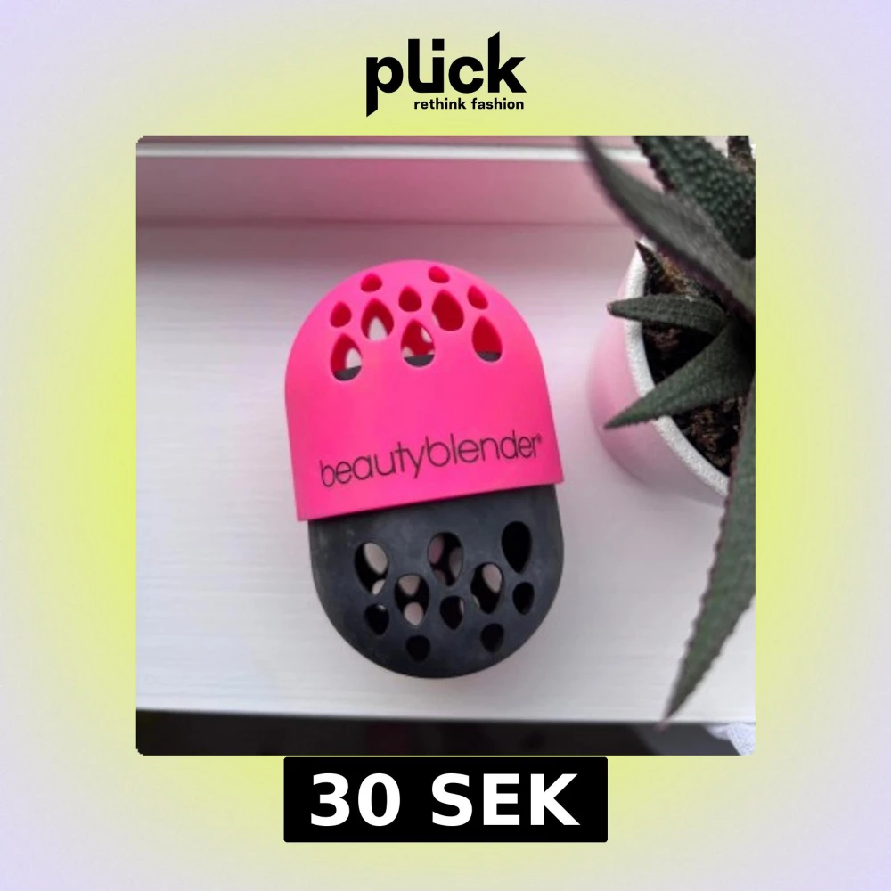 Säljer ett Beautyblender förvaringsetui i silikon, perfekt för att skydda och torka din beautyblender. Etuiet är tvådelat i stark rosa och svart med droppformade ventilationshål och logga på framsidan. Smidig att ta med i väskan eller ha på sminkbordet. Har tvättat av så gott det går!