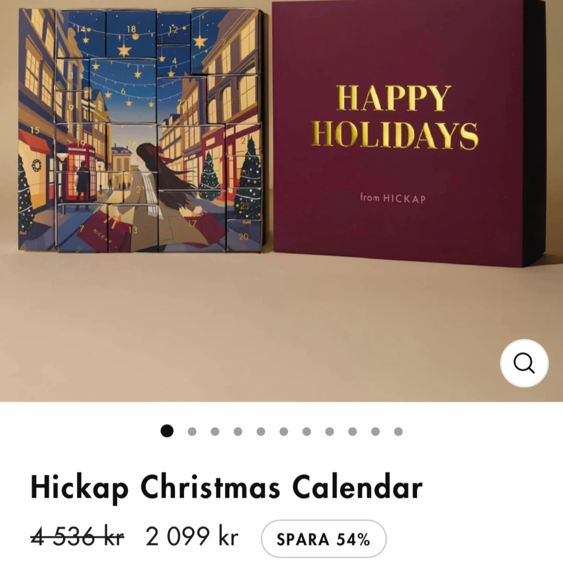 Jag säljer min julkalender från hickap, den är helt oöppnad och orörd. Den är slutsåld på hemsidan och nypris är 2099. Buda 💖