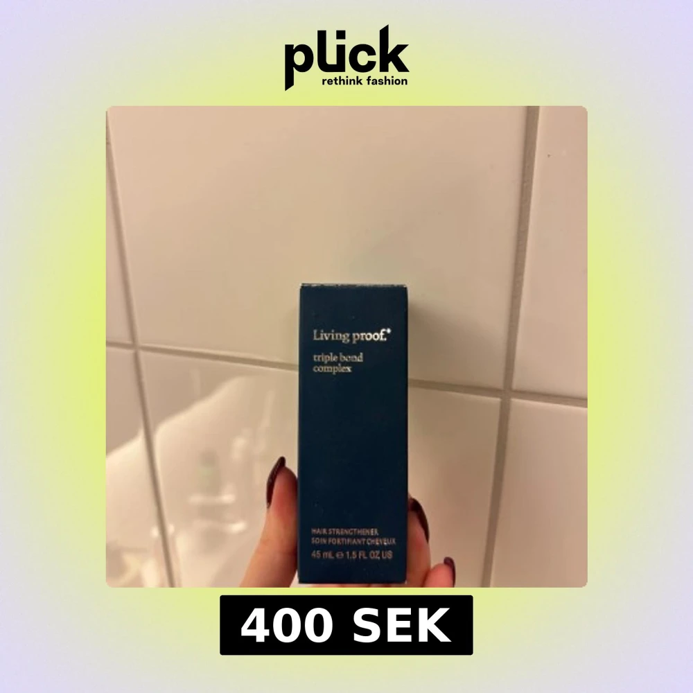 Living Proof Triple Bond Complex är en hårbehandling i en mörkblå flaska med silverdetalj. Produkten stärker håret och gör det mer motståndskraftigt mot skador. Innehåller 45 ml och är perfekt för dig som vill boosta hårets styrka och glans. Ord pris 519kr (enl Lyko). Helt oanvänd!