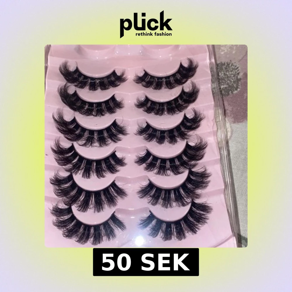 Säljer ett set med dramatiska svarta lösögonfransar. Perfekta för att ge en fyllig och intensiv look. Fransarna är täta och har en böjd form för att ge extra volym och längd. Kommer i en praktisk förpackning med flera par. Priset går att diskuteras!