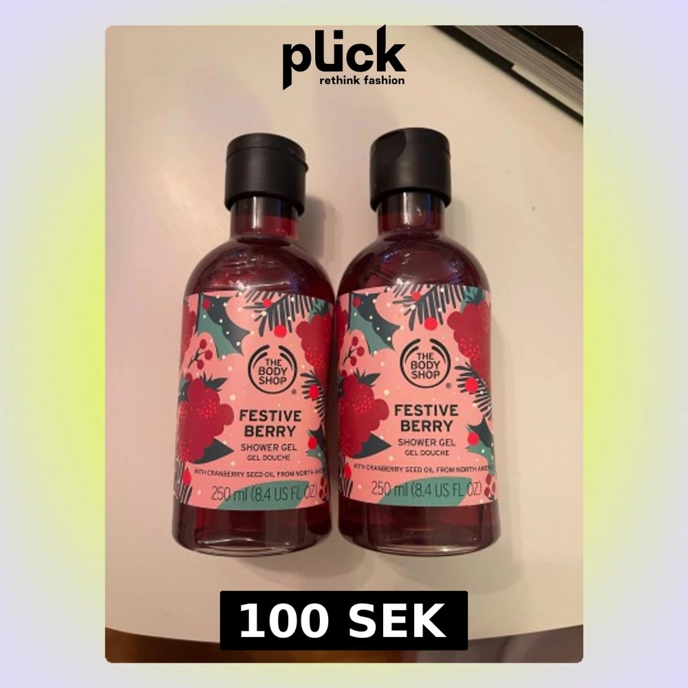 Två flaskor Festive Berry Shower Gel från The Body Shop, 250 ml vardera. Givetvis aldrig öppnade.