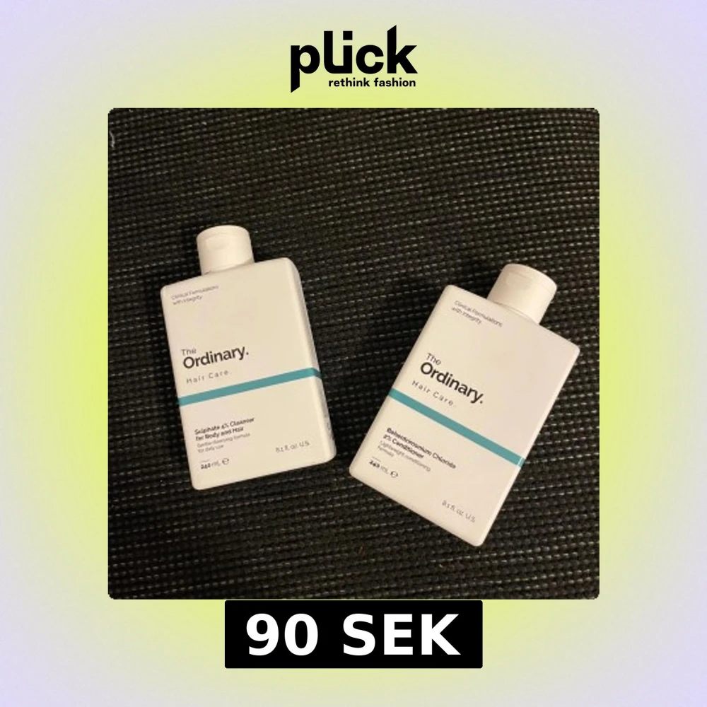 Säljer ett set med The Ordinary Hair Care: Sulphate 4% Cleanser for Body and Hair och Behentrimonium Chloride 2% Conditioner. Båda i vita, rektangulära plastflaskor med blå detalj, 240 ml vardera. Perfekt för dig som vill ha enkel och effektiv hårvård. Ca 90% kvar endast använda några gånger men passade ej mig ord pris 213kr