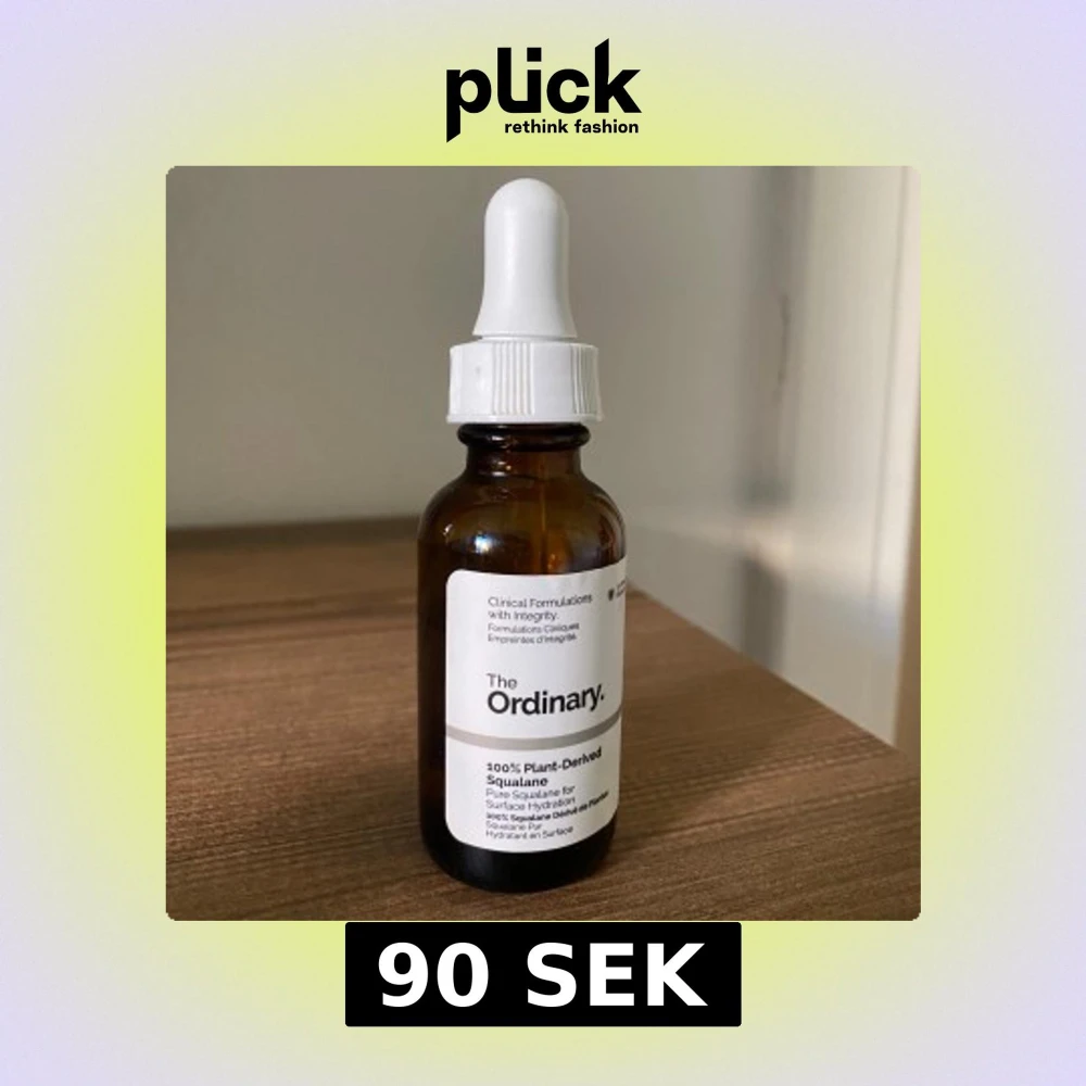 The Ordinary 100% Plant-Derived Squalane i brun glasflaska med vit pipett. Perfekt för att återfukta huden och ge glow. Innehåller 30 ml. Passar alla hudtyper och är vegansk.