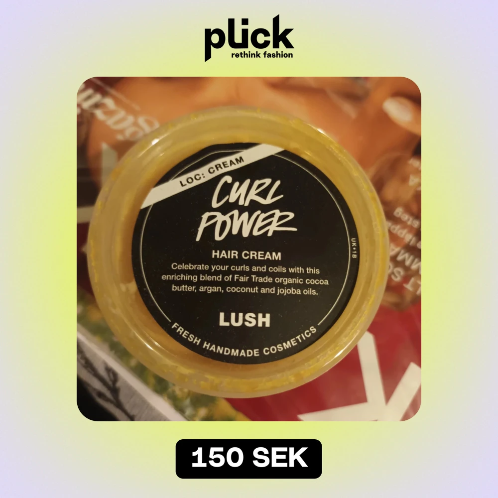 Curl Power Hair Cream från Lush är en kräm för att definiera och vårda lockar. Den innehåller Fair Trade ekologiskt kakaosmör, argan-, kokos- och jojobaoljor för att ge näring och glans. Perfekt för att fira och framhäva dina naturliga lockar och spiraler.