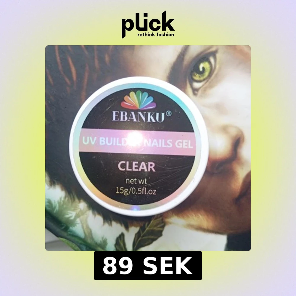UV Builder Nails Gel i färgen Clear från Ebanku. Perfekt för att bygga och förstärka naglar. Kommer i en rund vit burk med holografisk etikett och innehåller 15g gel. Gelen är genomskinlig och används med UV-lampa för härdning.
