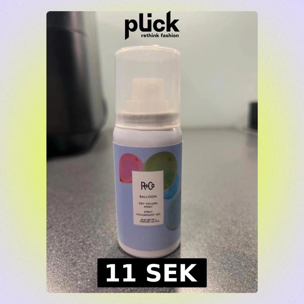 R+Co Balloon Dry Volume Spray i en smidig vit sprayflaska med blå etikett och färgglada ballonger. Ger volym och textur till håret, är vegansk och fri från parabener, sulfater och mineralolja. Innehåller 30 ml och har en praktisk plastkork. Helt oanvänd