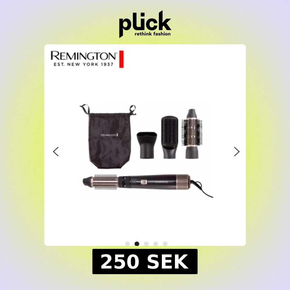 Remington varmluftsborste med flera tillbehör för styling. Inkluderar olika borsthuvuden och en praktisk förvaringspåse. Perfekt för att skapa volym och lockar. Använd 4 ggr, allt funkar som det ska💗 hör av dig för fler bilder eller vid frågor💗