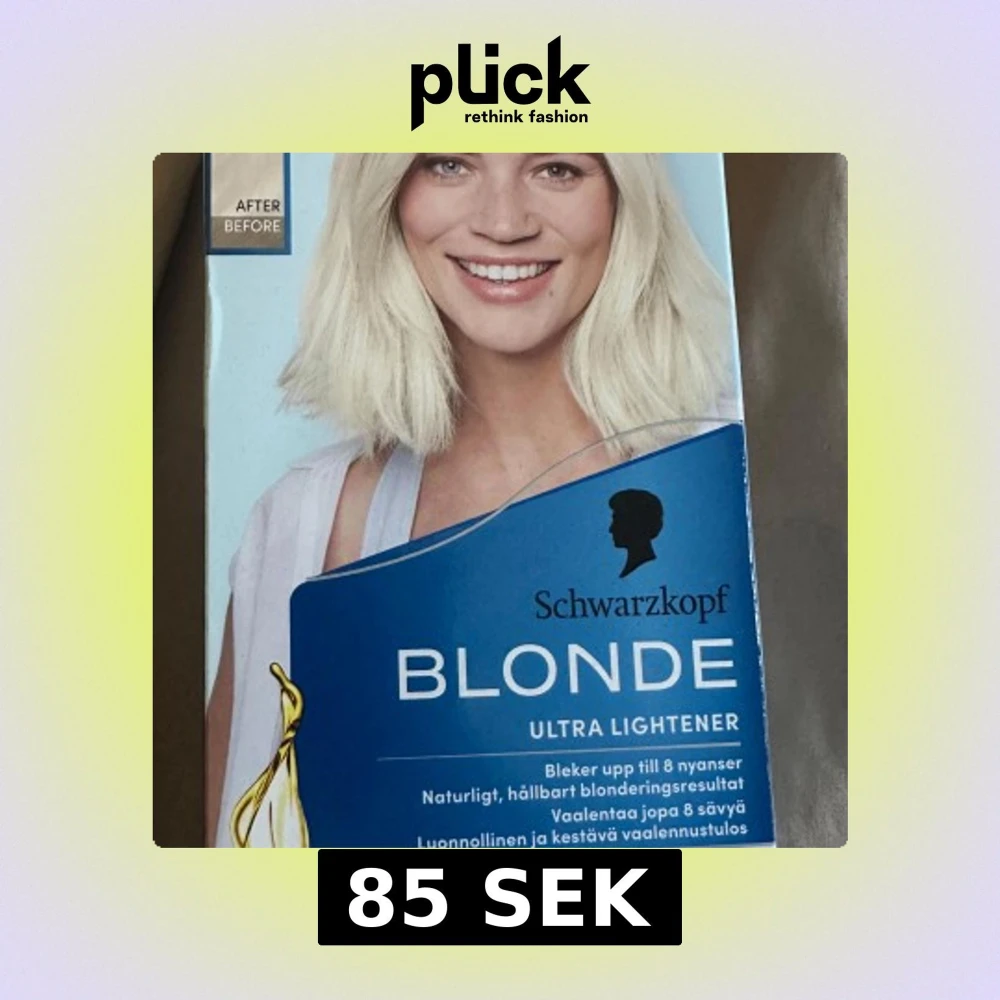 Blonderingskit som bleker håret upp till 8 nyanser och ger en ljusblond ton. Kommer inte till användning då jag blivit brun så ger ett försök o sälja här