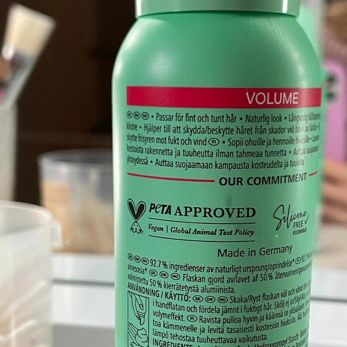 Volymmousse från Schwarzkopf Taft, grön flaska med röda detaljer. Passar fint för de som har tunt hår, ger naturlig look och långvarig volym utan klister. Vegansk och silikonfri formula, PETA-godkänd. Flaskan är tillverkad av återvunnet aluminium. Använd 2 gånger så mycket produkt kvar😊