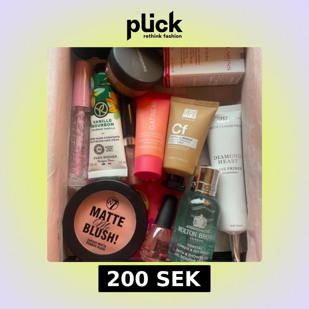 Helt oanvänd! Säljer ett sminkpaket med bareMinerals puderfoundation i svart burk, W7 Matte Me Blush i persikorosa nyans, Emite Cosmetics Diamond Heart Base Primer som ger glow, ett genomskinligt läppglans med rosa applikator och Artdeco Lip Couture i skimrande rosa. Perfekt för dig som gillar en fräsch och naturlig look.