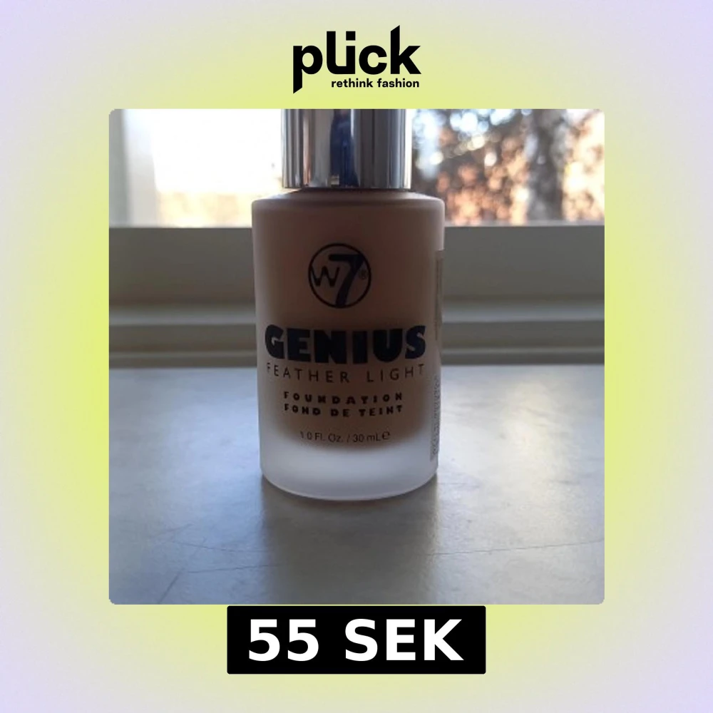 Flytande foundation från W7 i nyansen Genius Feather Light. Kommer i en frostad glasflaska med pipett och silverfärgat lock. Vegansk och lätt formula som ger en naturlig finish. Innehåller 30 ml.
