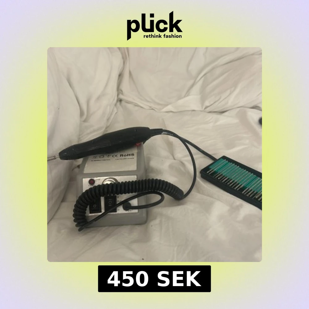 Säljer en elektrisk nagelfil med svart handtag och grå kontrollenhet. Medföljer ett set med 30 olika sliphuvuden i metall, perfekt för att fixa naglarna hemma. Filen har strömbrytare och justerbar hastighet. Passar både för manikyr och pedikyr. Köpt på fyndiq