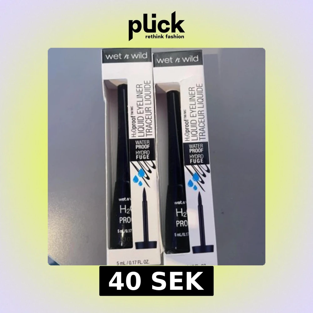 Två förpackningar av Wet n Wild H2O Proof Liquid Eyeliner i färgen Black Noir. Denna eyeliner är vattenfast och har en precisionsspets för enkel applicering. Perfekt för att skapa skarpa och hållbara linjer.