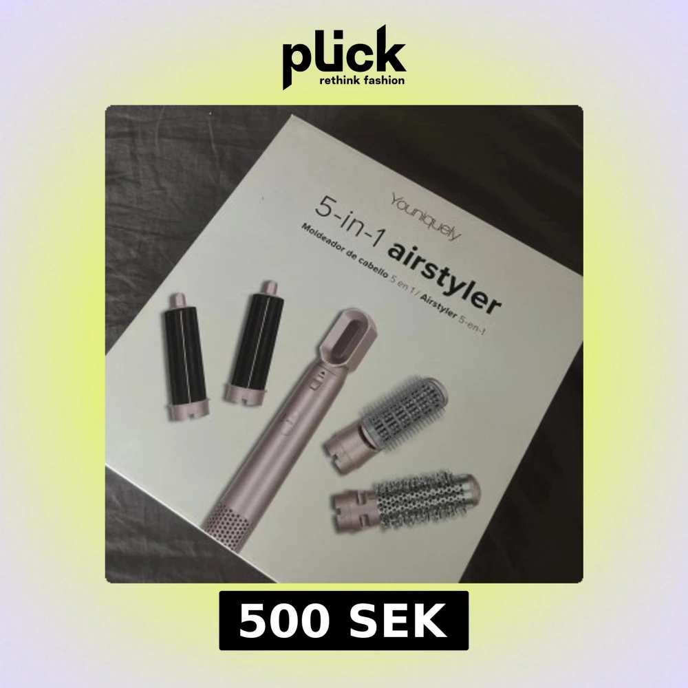 Multifunktionell hårstyler med fem utbytbara tillbehör för att skapa olika frisyrer. Inkluderar två locktillbehör, två rundborstar och ett fönmunstycke i roséguld och svart. Perfekt för att styla och forma håret med varmluft.