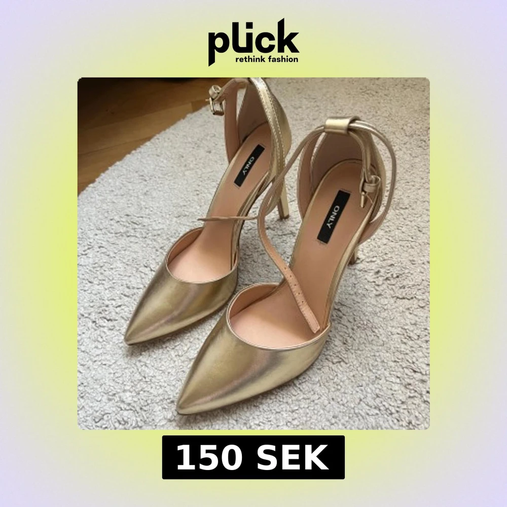 Guld klackskor från Only i storlek 39, aldrig använda💗 Ungefär 10cm klackhöjd. Skorna har lite padding i sulan vilket gör dem bekvämare och lättare att gå i